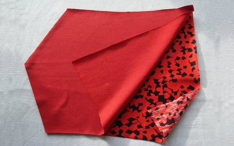 Schneiden Sie das Teil für zwei Stulpen je zweimal aus einem Oberstoff und aus einem innenliegenden wärmenden Futterstoff. Legen Sie die Stoffe rechts gegen rechts.